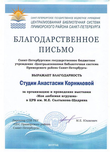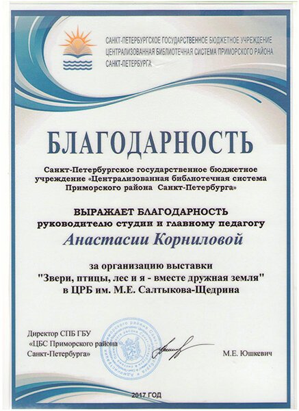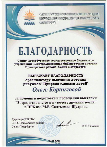 3) Победитель по Центральному федеральному округу Всероссийского детско-юношеского конкурса рисунков и прикладного творчества «Ихтиандр или кто живёт в воде» (2016 год).
